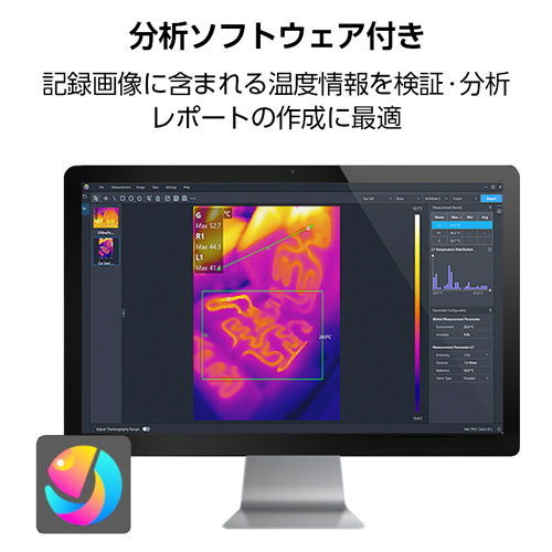 人の集まる施設などに設置して手軽に熱画像で発熱チェック可能。