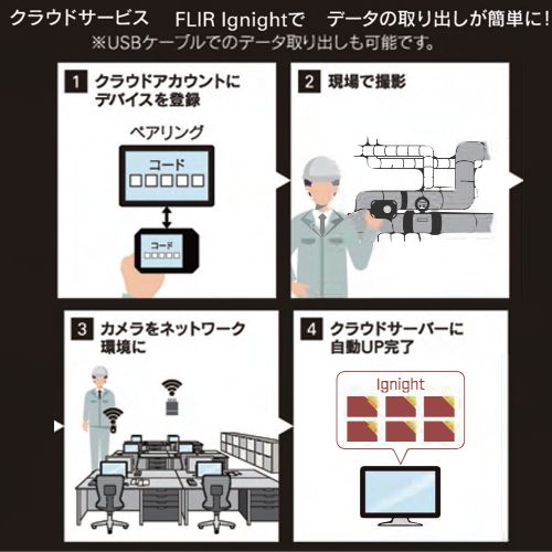 新たなクラウドサービスFLIR Ignite(イグナイト)接続機能とWi-Fi機能を搭載した、ポケットサイズのコンパクトサーモグラフィカメラ。