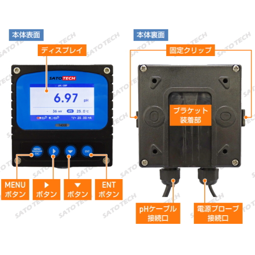 - pH値、水温をそれぞれ4-20mAで出力可能