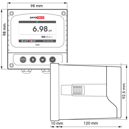 プロセスpH計HJ-CT4-PHは、pH測定値のリアルタイム表示に加え、外部機器への4-20mA転送出力と、上下限アラーム接点による制御を1台で完結させるパネルマウント型計測器です。