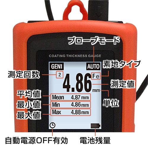 - 自動判別機能: プローブが基材(Fe/NFe)を自動認識。設定ミスを防ぎます。
