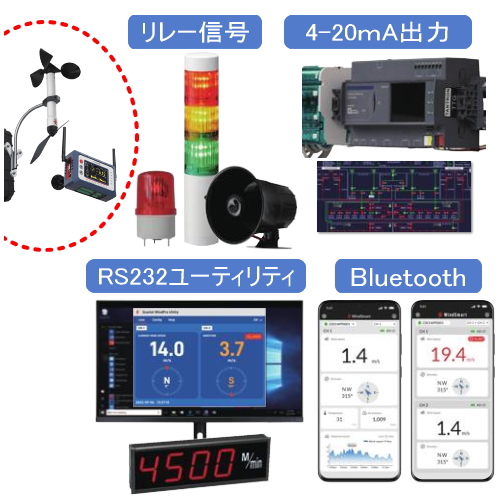 風速・風向の常時監視装置として使用でき、安全管理や運用判断に活用できます。