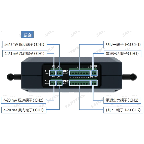 - 1台の表示器で風向風速計2台同時接続