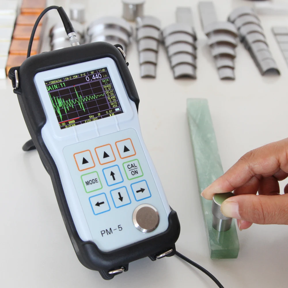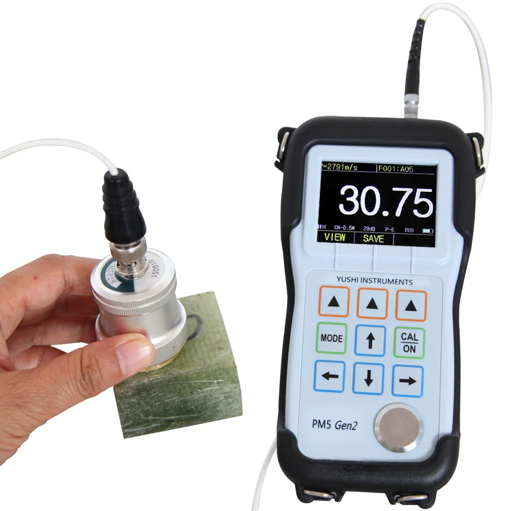 ここで革命的な役割を果たすのが、Yushi PM5 Gen2に代表される次世代の「A-スキャン」機能です。これは、音波の挙動をリアルタイムでグラフ化する技術です。検査員は、2.25MHz(12.5mm未満の測定に最適)などの適切なプローブを選択し、画面上の波形を直接観察します。