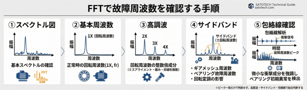 | STEP7:高調波・サイドバンド確認 | 真の異常か裏付ける |