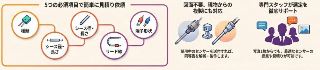 温度センサー(熱電対・測温抵抗体)の写真があるだけでも大体の見積もりが可能な場合もあります!