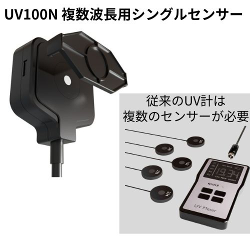- 複数の受光部センサーは不要。一台で250~400nm間の紫外線強度をカバー