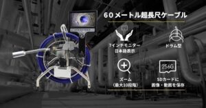 - 配管・下水管・熱交換器などの内部を可視化できる超長尺ビデオスコープ