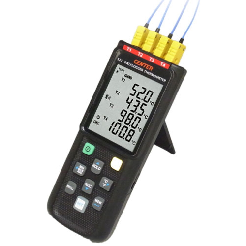 4ch温度計ロガー CENTER521 は、4つのK熱電対センサーを同時に接続でき、Bluetoothによるワイヤレス管理も可能な次世代のデータロガーです。