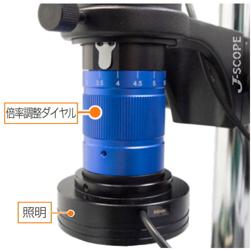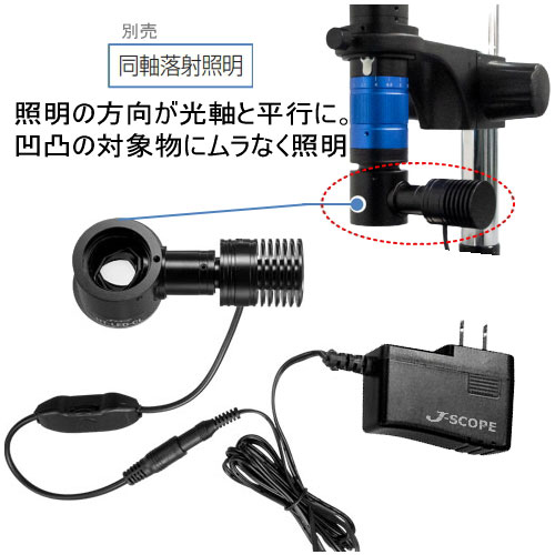 | 付属品 | 鏡筒、照明、ACアダプター、調光ケーブル、ステージ、支柱、照準装置、六角レンチ(×3)、カメラユニット、HDMIケーブル、LANケーブル、USB ACアダプター、取扱説明書(本体、JCAM Proソフトウェア) |