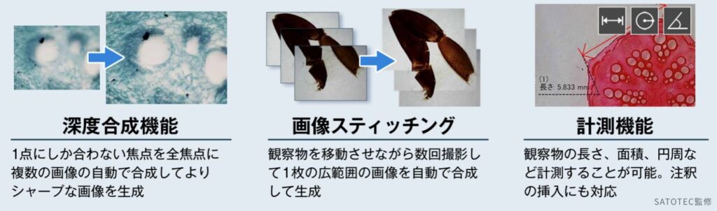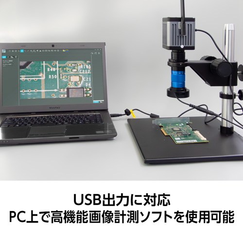 PC接続時の専用ソフトを使用することで、2点間距離、角度、円の直径、面積などの精密な計測が可能です。