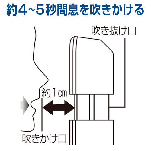 予熱完了後、吹き込み口に約5秒間息を吹きかける。