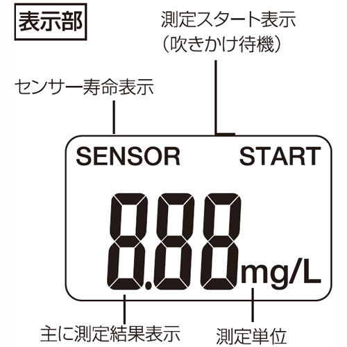 HJ-AC20は電源を入れてから10秒の予熱後、約5秒間息を吹き込むだけで測定が完了します。液晶にデジタル数値が表示されるため、誰でも簡単に判定可能です。