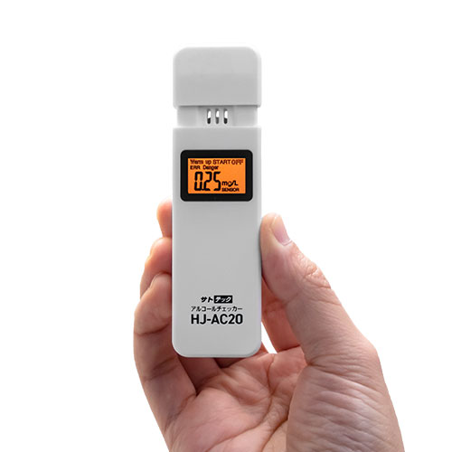 HJ-AC20は、吹きかけ方式のポータブル型の半導体式アルコールチェッカーです。検知範囲は0.00〜0.95mg/Lで、1,000回の測定または1年間の使用が寿命の目安となります。