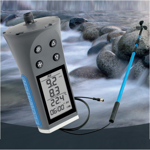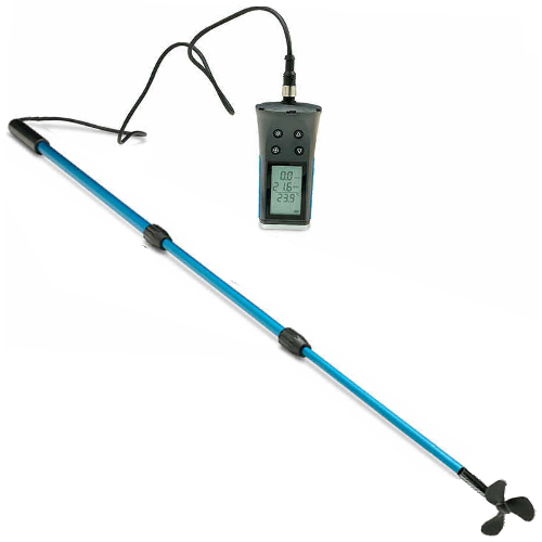 - プロペラ回転を非接触センサーで検出し、デジタル表示ユニットで即座に流速に換算。